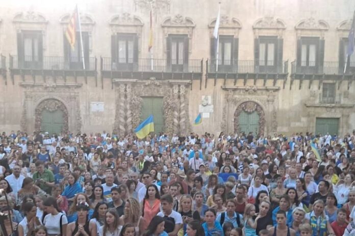 La asociación alicantina Amigos de Ucrania recorrerá el centro de Alicante portando una bandera ucraniana de 100 metros de longitud, que marchará desde la Plaza de los Luceros hasta el Ayuntamiento de Alicante.